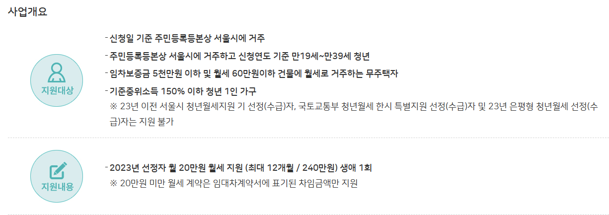 자세한 내용은 위의 첨부파일을 통해 확인하거나, 서울 주거 포털 청년 월세 지원란에서 확인 가능합니다.